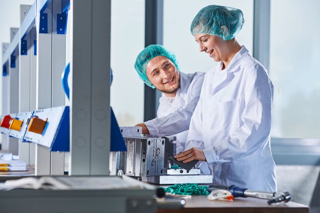 In deiner Ausbildung zum Kunststoff- und Kautschuktechnologe hast du es mit kunststoffverarbeitenden Maschinen, Geräten und Systemen zu tun, die du einrichtest, in Betrieb nimmst und in Stand hältst. In diesem Zusammenhang zeigen wir dir, wie du technische Unterlagen fachmännisch liest, anwendest und erstellst und was du zu unterschiedlichsten Kunststoffen, Kautschuken sowie Zuschlag- und Hilfsstoffen wissen musst. Schon bald arbeitest du mit Kunststoffhalbzeugen und metallischen Werkstoffen und lernst alles, was du zum erfolgreichen Fügen, Umformen, Spritzgießen, Messen, Steuern und Regeln brauchst. Zudem bist du für den Aufbau und die Prüfung pneumatischer und hydraulischer Steuerungen und die Einhaltung von Umwelt- und Gesundheitsschutzbestimmungen verantwortlich. Nicht zuletzt führen wir dich in die Geheimnisse guter betrieblicher und technischer Kommunikation und optimaler Arbeitsabläufe ein.