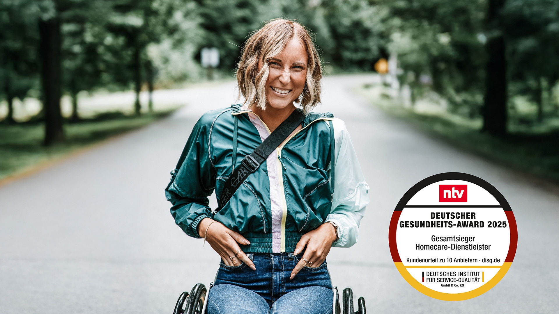 Glücklich. Mit Rollstuhl. Ebba hat sich wiedergefunden nach ihrer plötzlichen Querschnittslähmung. Sie hat all ihre Kräfte mobilisiert, an sich selbst und an ihre Ziele geglaubt. Und sie hat Menschen an ihrer Seite gehabt, die ihre Persönlichkeit gesehen haben, ihr Potenzial, nicht ihre Limits. Das ist es, worum es bei B. Braun HomeCare geht.