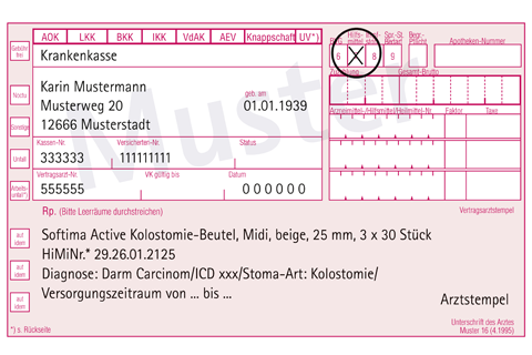 Ihr Arzt bzw. Ihre Ärztin legt ein Therapieziel fest und entscheidet, welche Hilfsmittel Sie benötigen. Lassen Sie sich eine Verordnung (Rezept Muster 16) ausstellen. Ihre Arztpraxis ist mit Hilfsmittelverordnungen vertraut und weiß, was zu tun ist. Sie können aber darauf achten, dass auf dem Rezept das Feld "Nr. 7 - Hilfsmittel" angekreuzt ist.