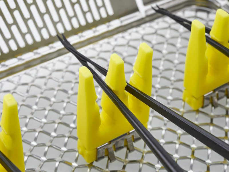 Die AESCULAP Aicon® Siebkörbe verfügen über eine neue rutschfeste, wellenförmige Bodenkonstruktion. Ringinstrumente bleiben während des Verpackungsprozesses aufrecht stehen, was das Packen der Sets deutlich komfortabler macht.