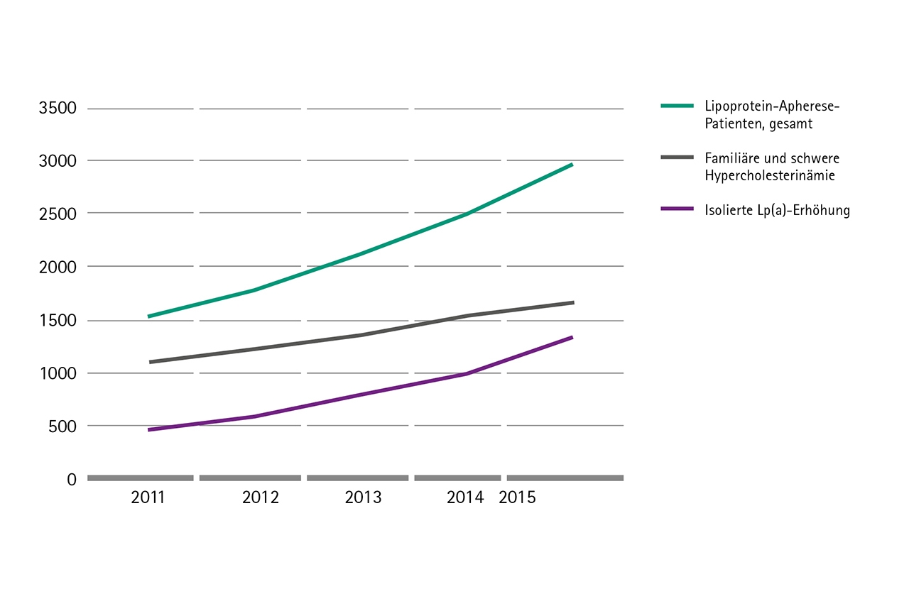 Inzwischen erhalten über 3.000 Patienten eine Lipoproteinapherese-Therapie in Deutschland. Ungefähr die Hälfte dieser Patienten leidet an einer schweren Hypercholesterinämie, während die andere Hälfte aufgrund ihrer isolierten Lp(a)-Erhöhung mit Lipoproteinapherese behandelt werden.5