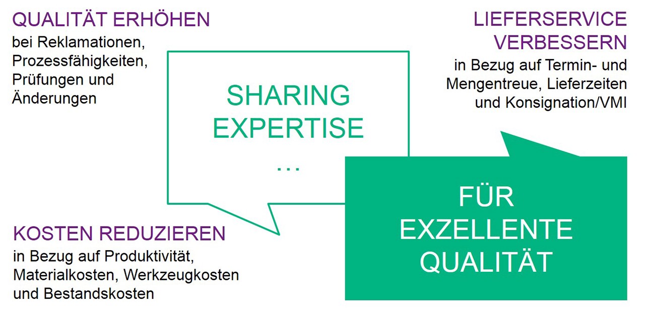Lieferqualität ist für uns mehr als das bloße Erreichen von Zeichnungstoleranzen – es ist die Erfüllung aller Kundenerwartungen. Wir wollen die Qualität erhöhen, Lieferprozesse verbessern und Kosten senken. Das können wir nachhaltig nur durch gemeinsame Anstrengungen und eine enge Zusammenarbeit mit unseren Lieferanten erreichen und absichern.