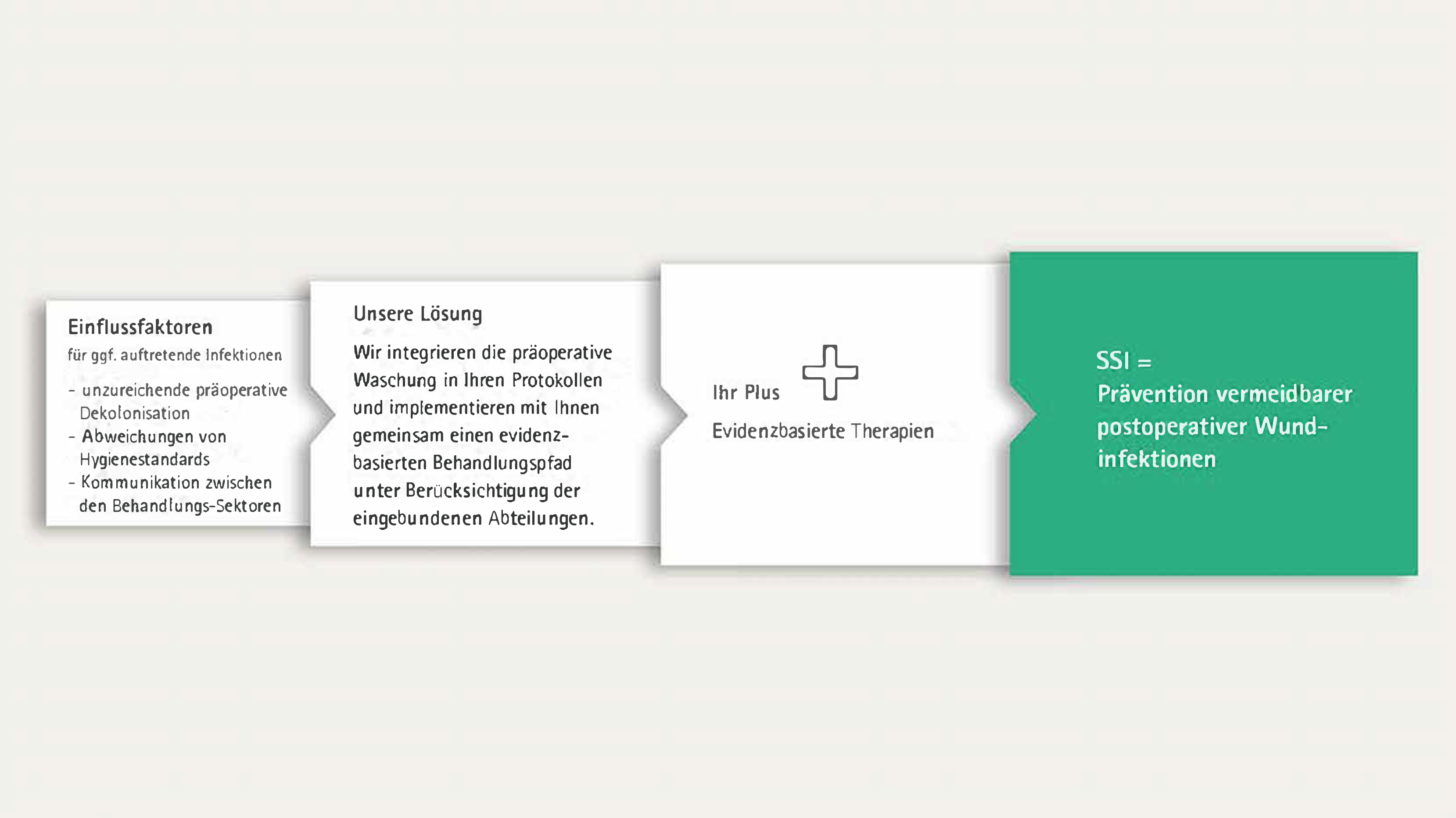 Postoperative Wundinfektionen durch mikrobielle Erreger sind für Ihre Patient*innen sehr belastend und können für Ihr Krankenhaus zu einem hohen Kostenfaktor werden. Ein Teil davon lässt sich mit einer auf Ihr Haus abgestimmten Bündelstrategie reduzieren.