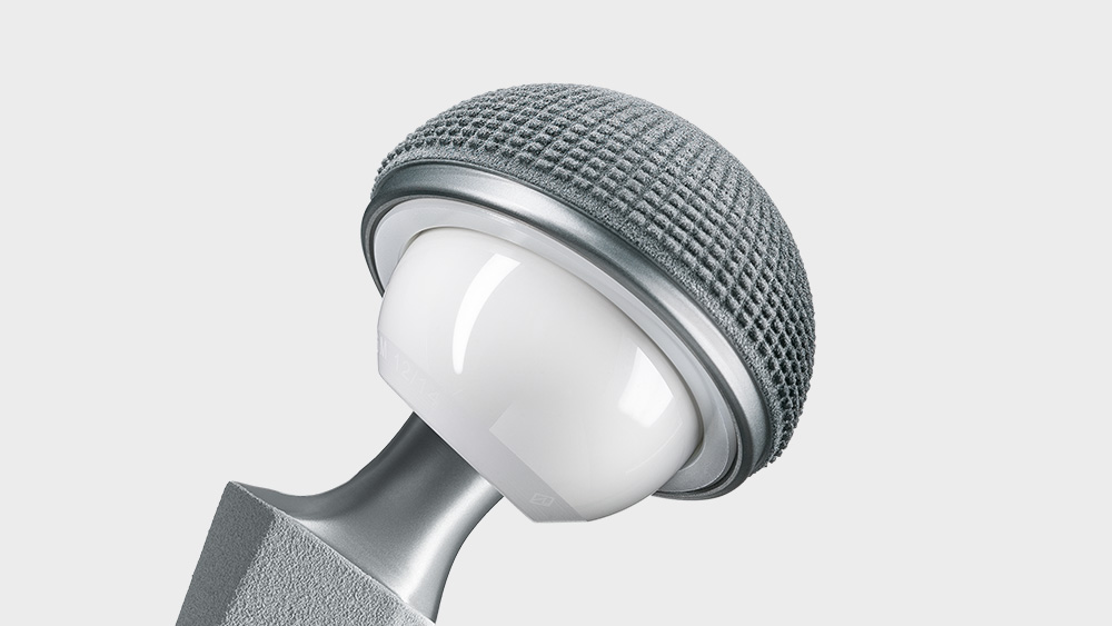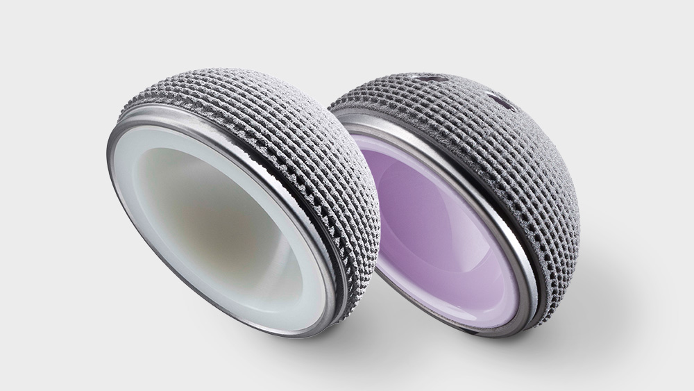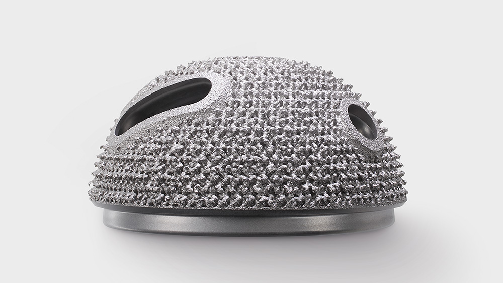 Zementfreie Hüftpfanne für Primär- und Revisionsversorgungen. Die lasergesinterte Struktur bietet auch in schwierigen Revisionsfällen mit größeren acetabulären Defekten eine hohe Primärstabilität.